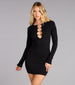 Minimal effort, major payoff. This mini dress levels up your classic LBD with bold ring accents and a body-hugging fit made to steal the spotlight every time you step out.